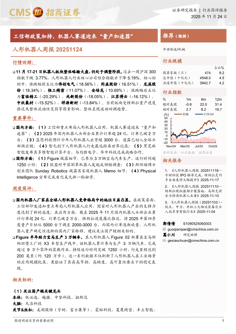 人形机器人行业:招商证券-人形机器人行业周报:工信部政策加持,机器人赛道迎来“量产加速器”-251124