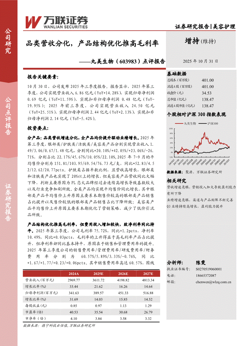 丸美生物:万联证券-丸美生物-603983-点评报告:品类营收分化,产品结构优化推高毛利率-251031