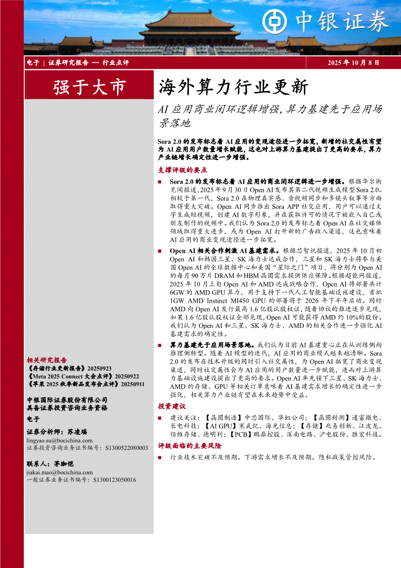 算力行业:中银国际-海外算力行业更新:AI应用商业闭环逻辑增强,算力基建先于应用场景落地-251008