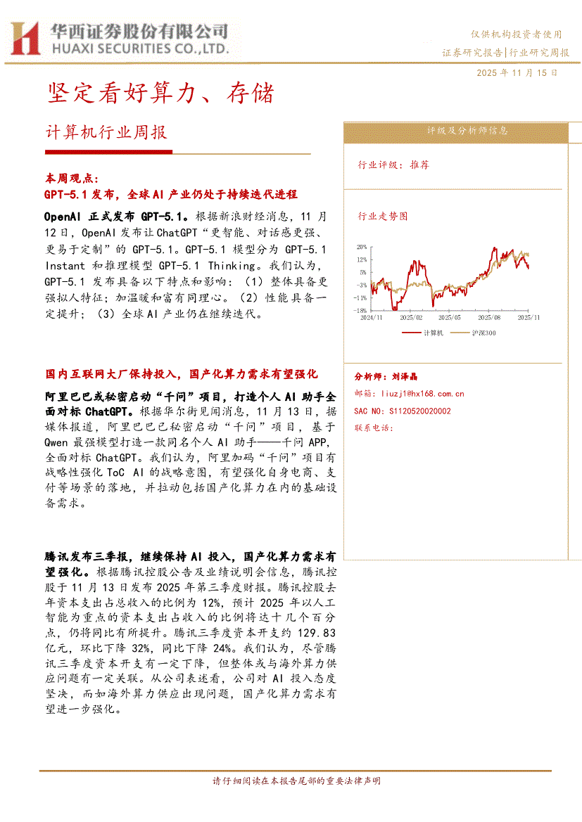 计算机行业:华西证券-计算机行业周报:坚定看好算力、存储-251115