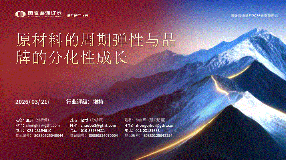 纺织服装行业:国泰海通证券-纺织服装行业:原材料的周期弹性与品牌的分化性成长-260321
