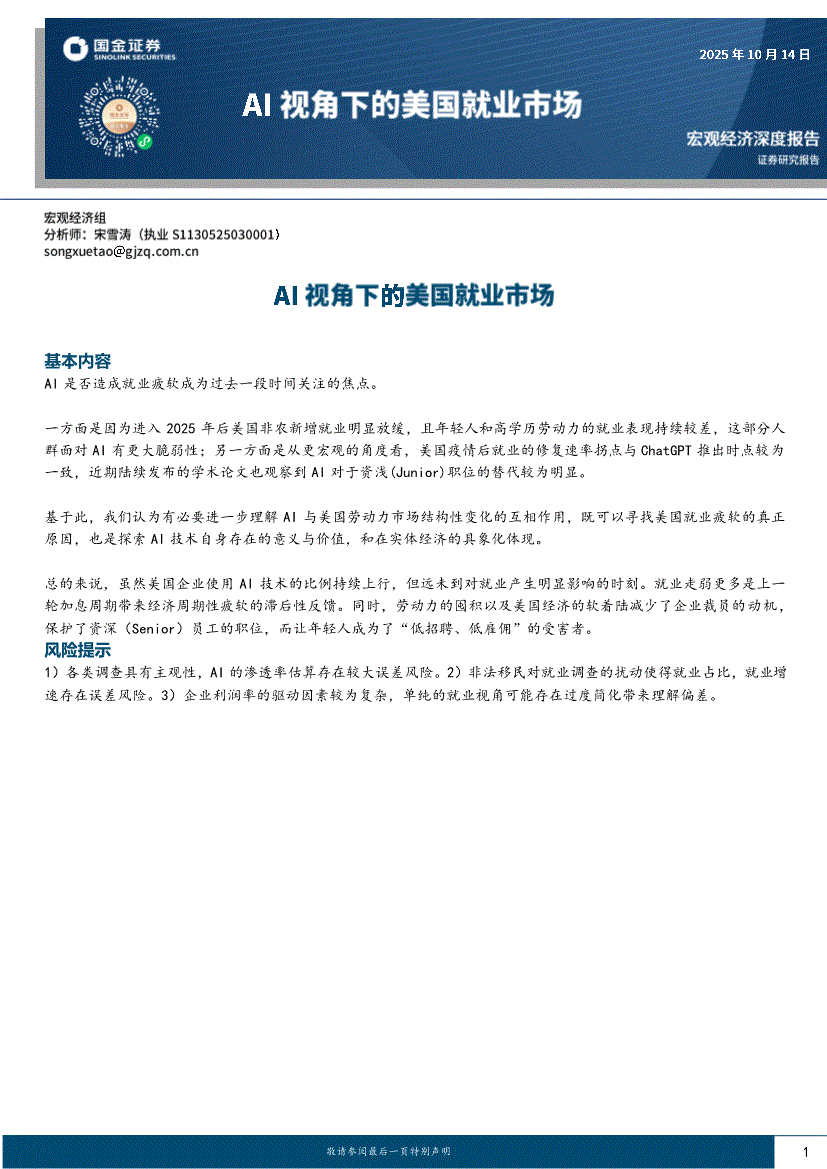 国金证券-AI视角下的美国就业市场-251014