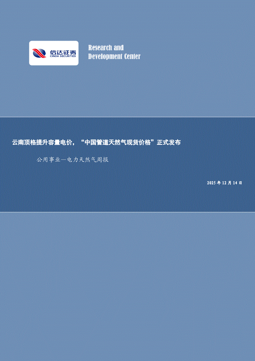 公用事业行业:信达证券-公用事业行业—电力天然气周报:云南顶格提升容量电价,“中国管道天然气现货价格”正式发布-251214