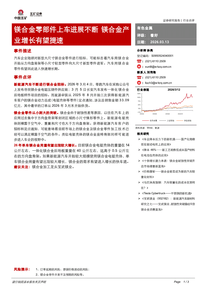 有色金属行业:五矿证券-有色金属行业:镁合金零部件上车进展不断,镁合金产业增长有望提速-260313
