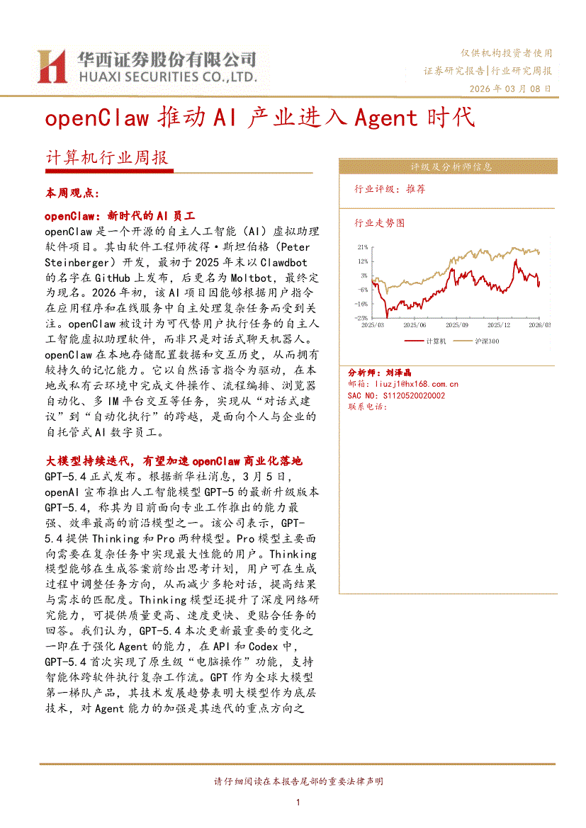 计算机行业:华西证券-计算机行业周报:openClaw推动AI产业进入Agent时代-260308