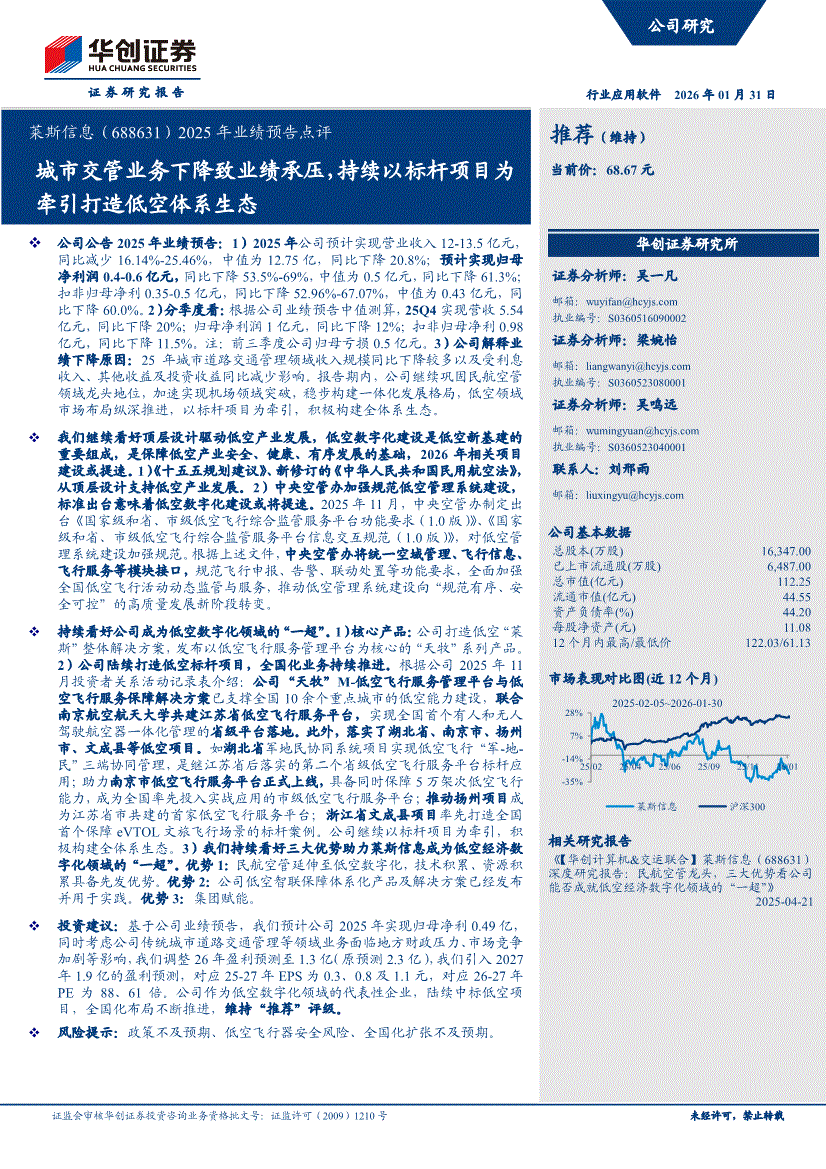 莱斯信息:华创证券-莱斯信息-688631-2025年业绩预告点评:城市交管业务下降致业绩承压,持续以标杆项目为牵引打造低空体系生态-260131