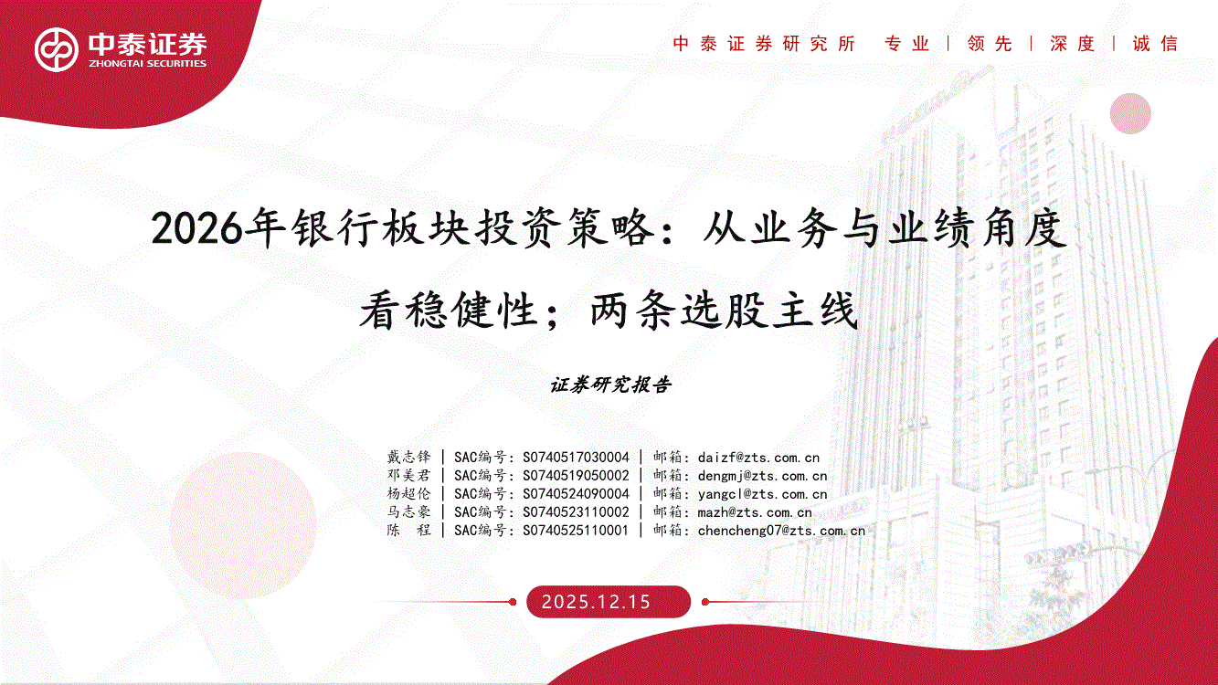 银行业:中泰证券-2026年银行业板块投资策略:从业务与业绩角度看稳健性;两条选股主线-251215