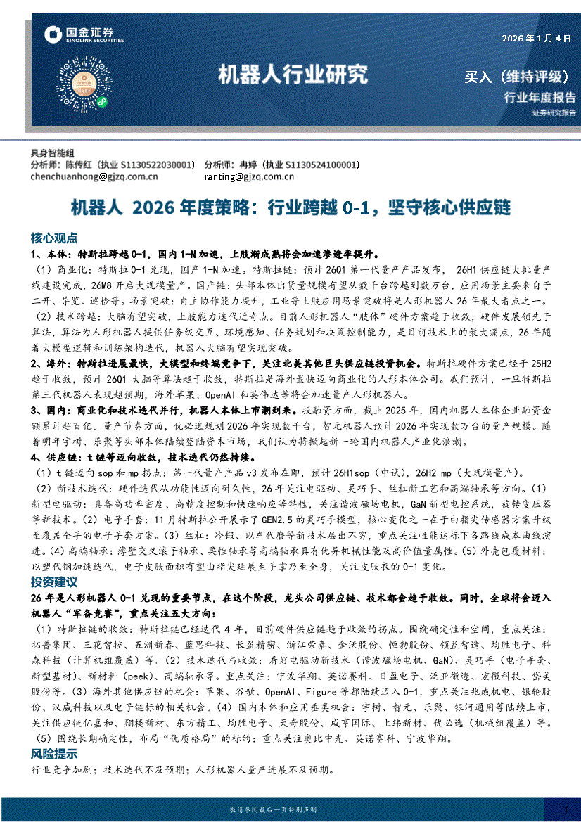 机器人行业:国金证券-机器人行业2026年度策略:行业跨越0~1,坚守核心供应链-260104