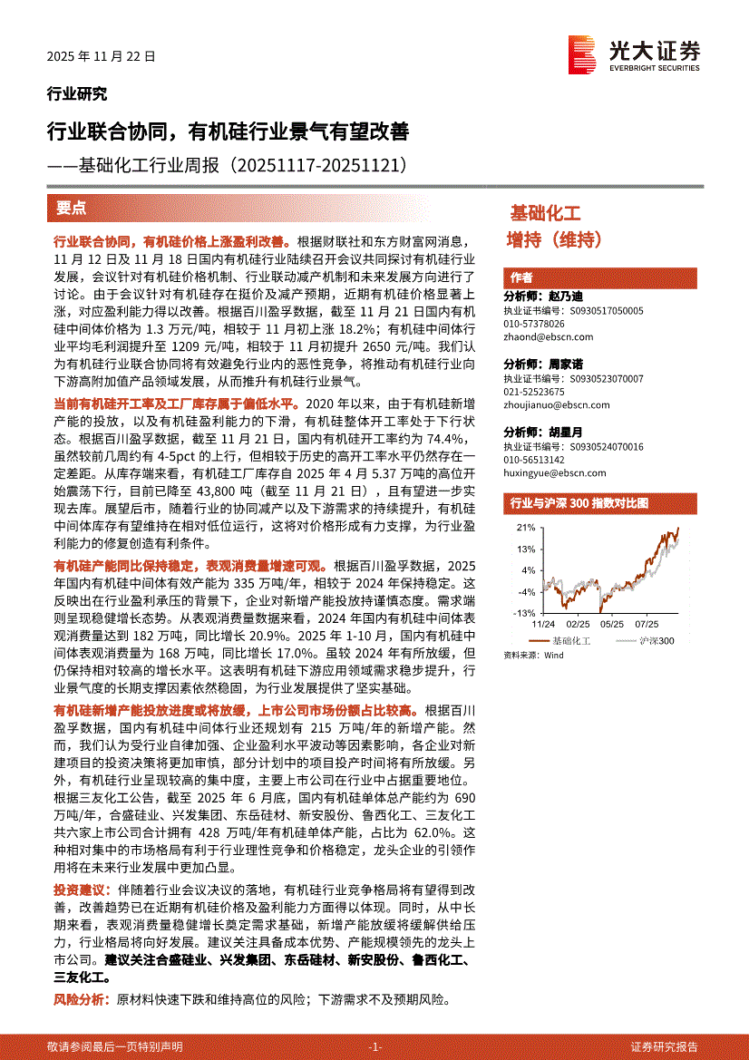 基础化工行业:光大证券-基础化工行业周报:行业联合协同,有机硅行业景气有望改善-251122
