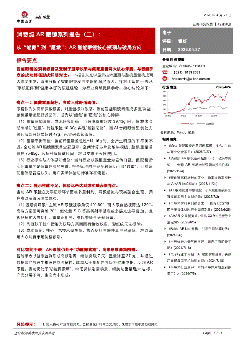电子行业:五矿证券-电子行业消费级AR眼镜系列报告(二):从“能戴”到“愿戴”,智能眼镜核心瓶颈与破局方向-260427