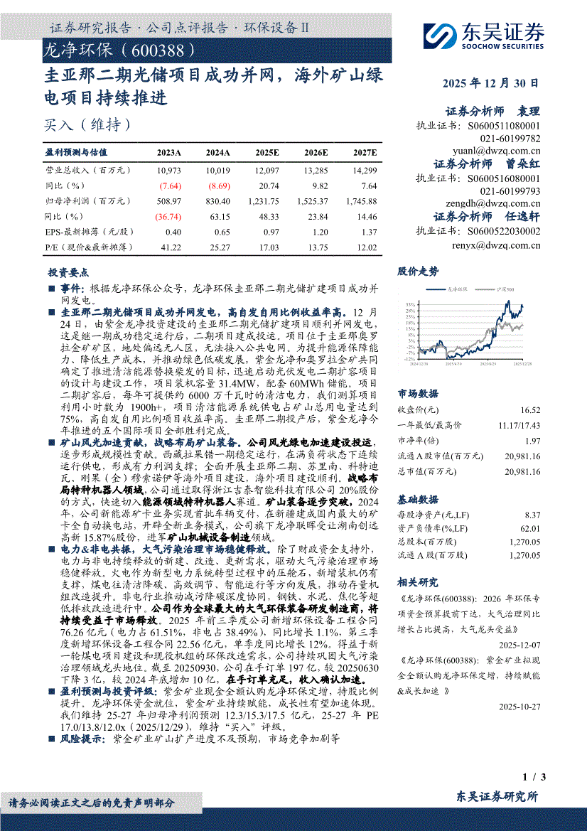 龙净环保:东吴证券-龙净环保-600388-圭亚那二期光储项目成功并网,海外矿山绿电项目持续推进-251230