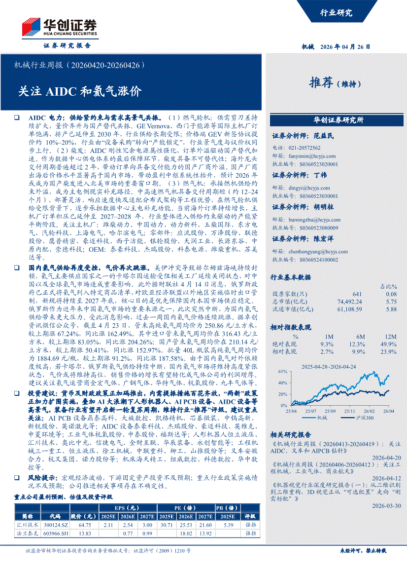 机械行业:华创证券-机械行业周报:关注AIDC和氦气涨价-260426