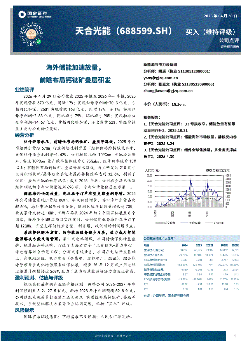 天合光能:国金证券-天合光能-688599-海外储能加速放量,前瞻布局钙钛矿叠层研发-260430