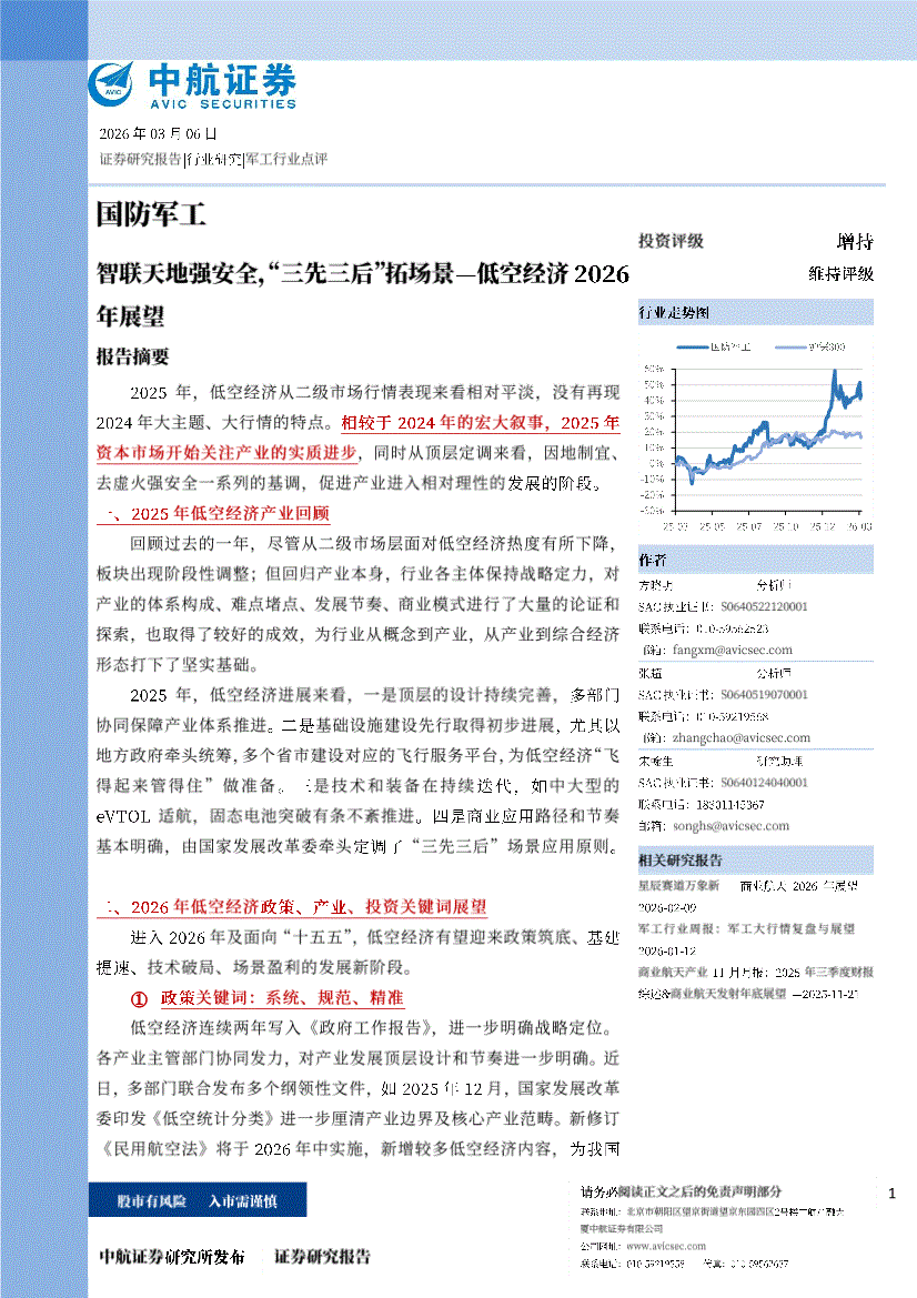 国防军工行业:中航证券-军工行业点评:智联天地强安全,“三先三后”拓场景—低空经济2026年展望-260306
