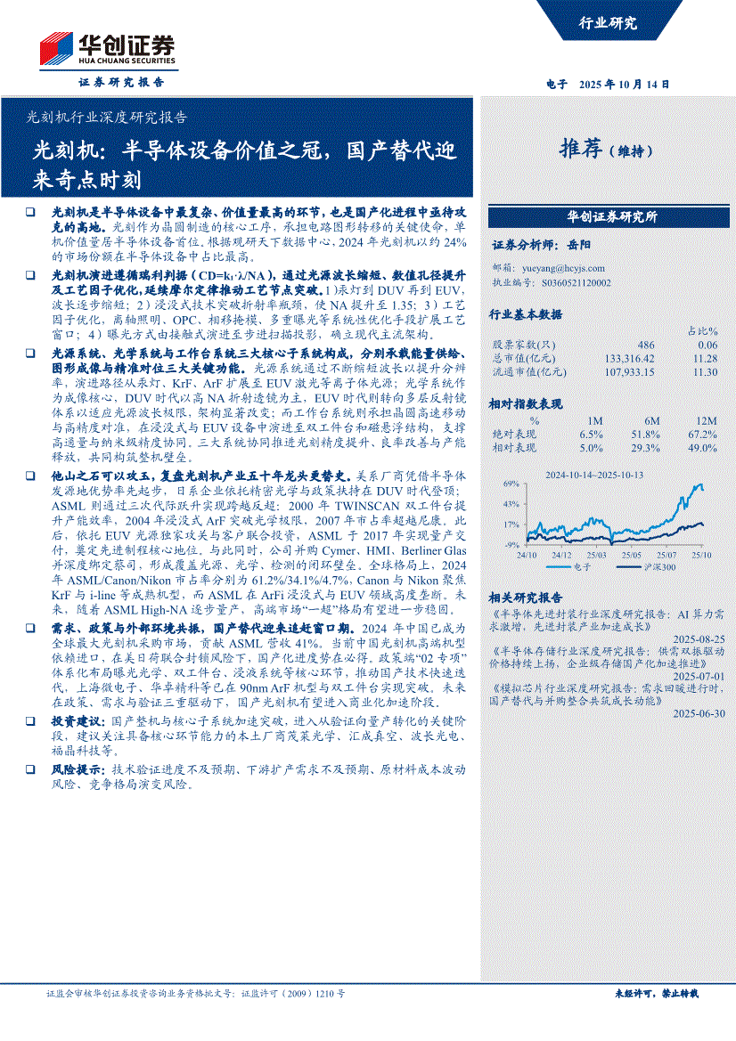 光刻机行业:华创证券-光刻机行业深度研究报告:半导体设备价值之冠,国产替代迎来奇点时刻-251014