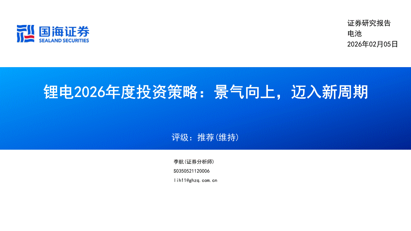 电池行业:国海证券-电池行业锂电2026年度投资策略:景气向上,迈入新周期-260205