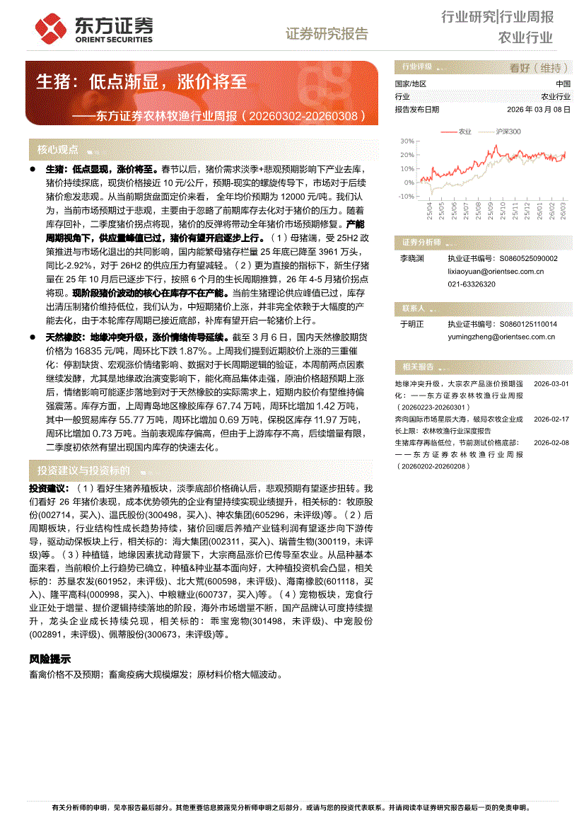 农林牧渔行业:东方证券-农林牧渔行业周报:生猪,低点渐显,涨价将至-260308