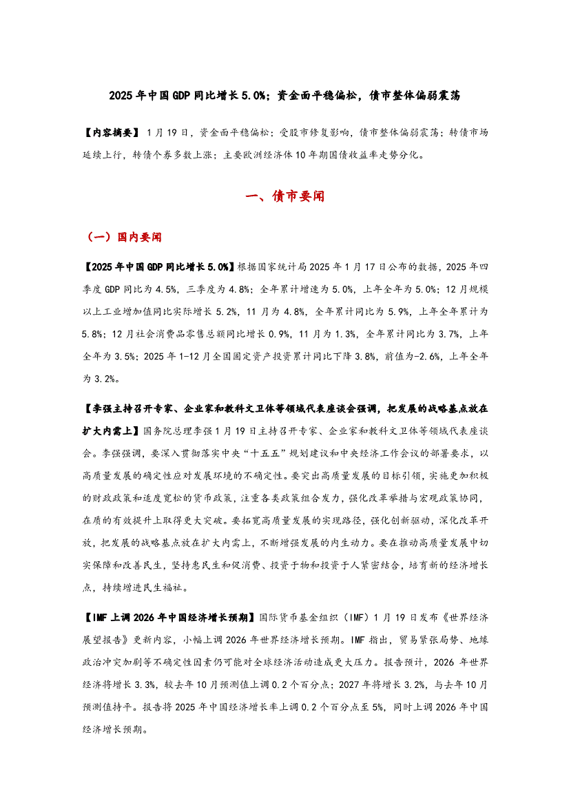 东方金诚-2025年中国GDP同比增长5.0%;资金面平稳偏松,债市整体偏弱震荡-260123