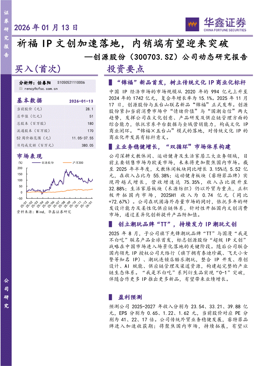 创源股份:华鑫证券-创源股份-300703-公司动态研究报告:祈福IP文创加速落地,内销端有望迎来突破-260113