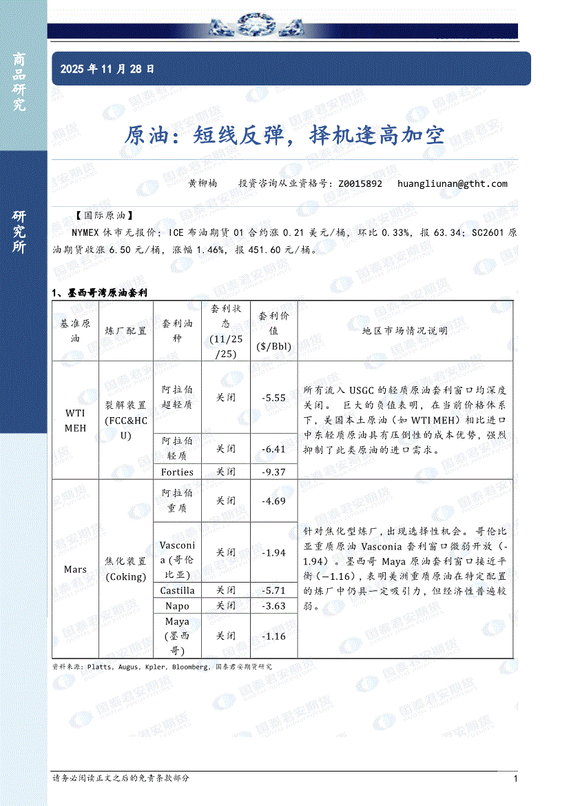 国泰君安期货-原油:空单持有,关注地缘扰动-251215