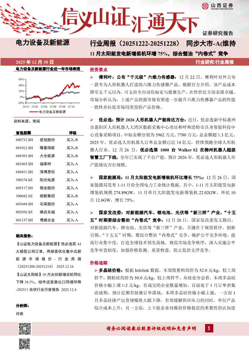 电力设备及新能源行业:山西证券-电力设备及新能源行业周报:11月太阳能发电新增装机环增75%,综合整治“内卷式”竞争-251230