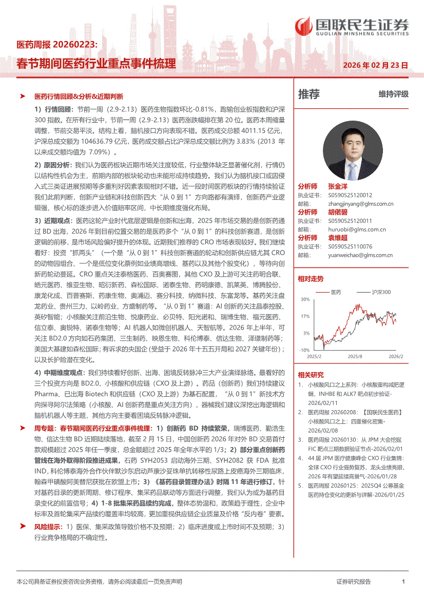 医药行业:国联民生证券-医药行业周报:春节期间医药行业重点事件梳理-260223