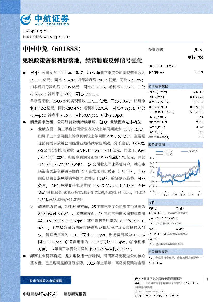 中航证券-中国中免-601888-免税政策密集利好落地,经营触底反弹信号强化-251126