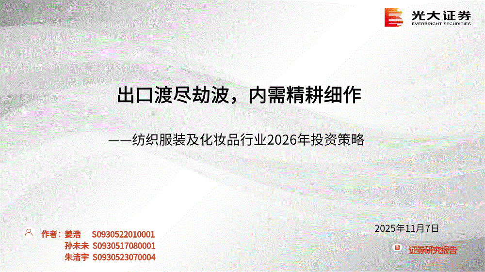 纺织服装及化妆品行业:光大证券-纺织服装及化妆品行业2026年投资策略:出口渡尽劫波,内需精耕细作-251107