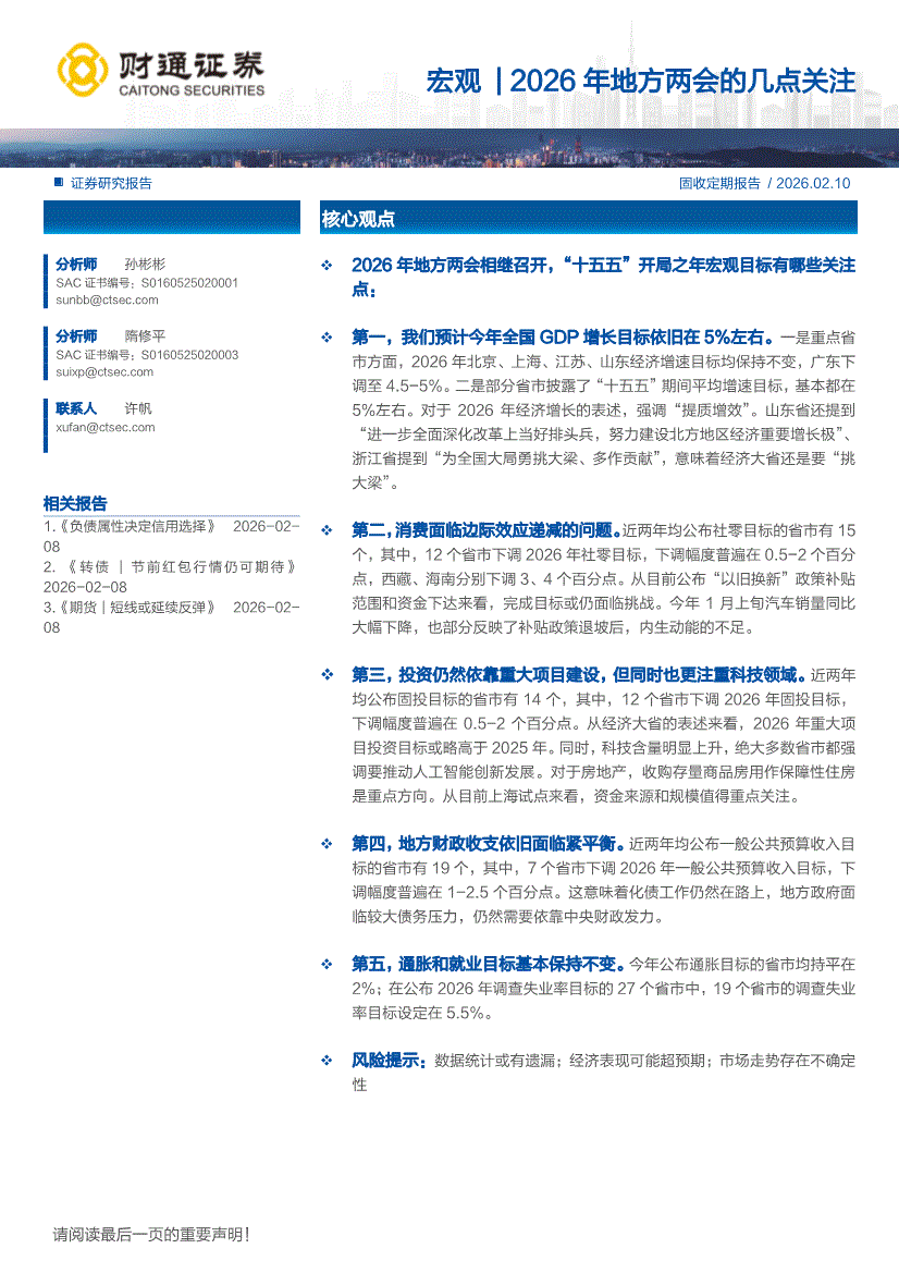 财通证券-宏观| 2026年地方两会的几点关注-260210