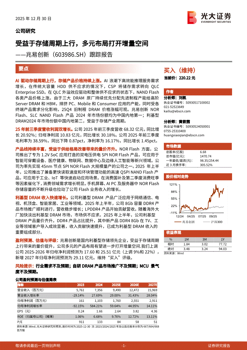 兆易创新:光大证券-兆易创新-603986-跟踪报告:受益于存储周期上行,多元布局打开增量空间-251230