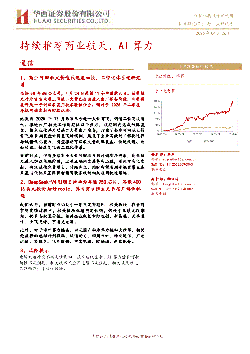 通信行业:华西证券-通信行业:持续推荐商业航天、AI算力-260426
