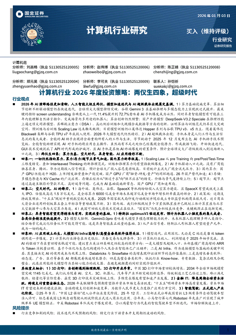计算机行业:国金证券-计算机行业2026年度投资策略:两仪生四象,超级时代-260103