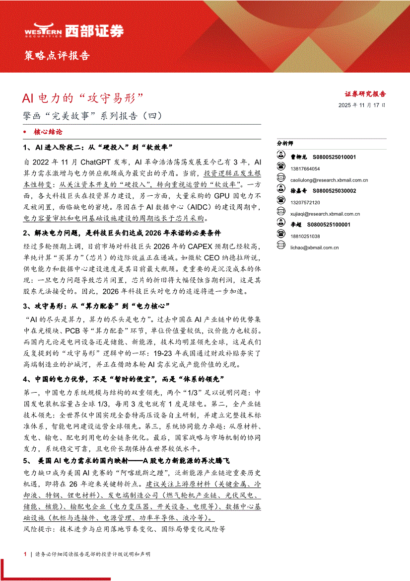 西部证券-擎画“完美故事”系列报告(四):AI电力的“攻守易形”-251117