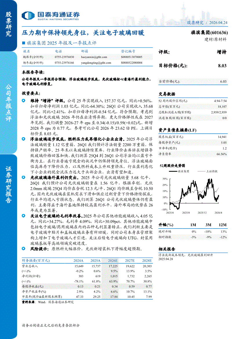旗滨集团:国泰海通证券-旗滨集团-601636-2025年报及一季报点评:压力期中保持领先身位,关注电子玻璃回暖-260424