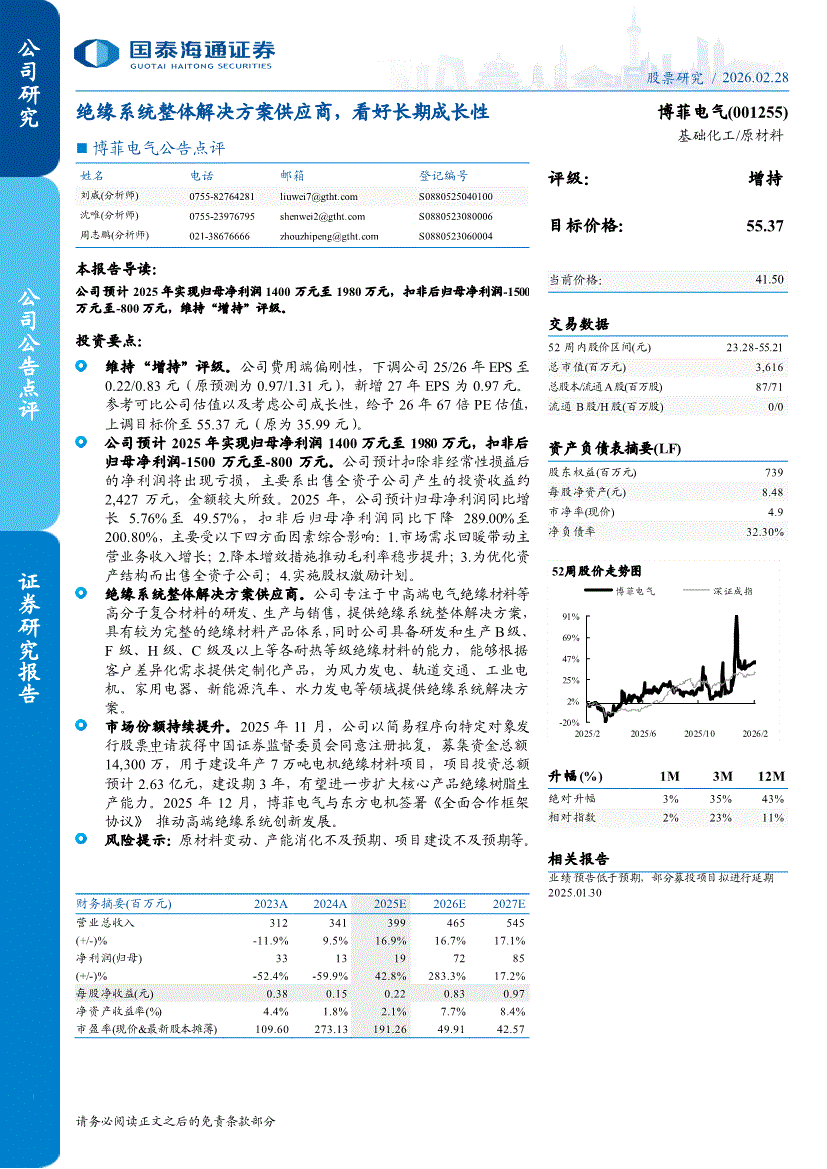 博菲电气:国泰海通证券-博菲电气-001255-绝缘系统整体解决方案供应商,看好长期成长性-260228
