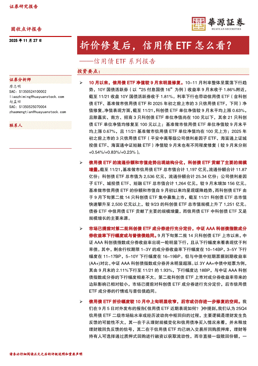 华源证券-信用债ETF系列报告:折价修复后,信用债ETF怎么看?-251127