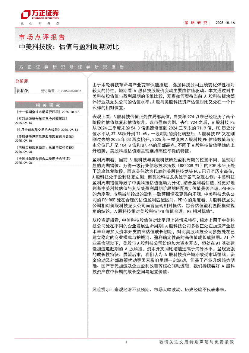 方正证券-市场点评报告:中美科技股,估值与盈利周期对比-251016