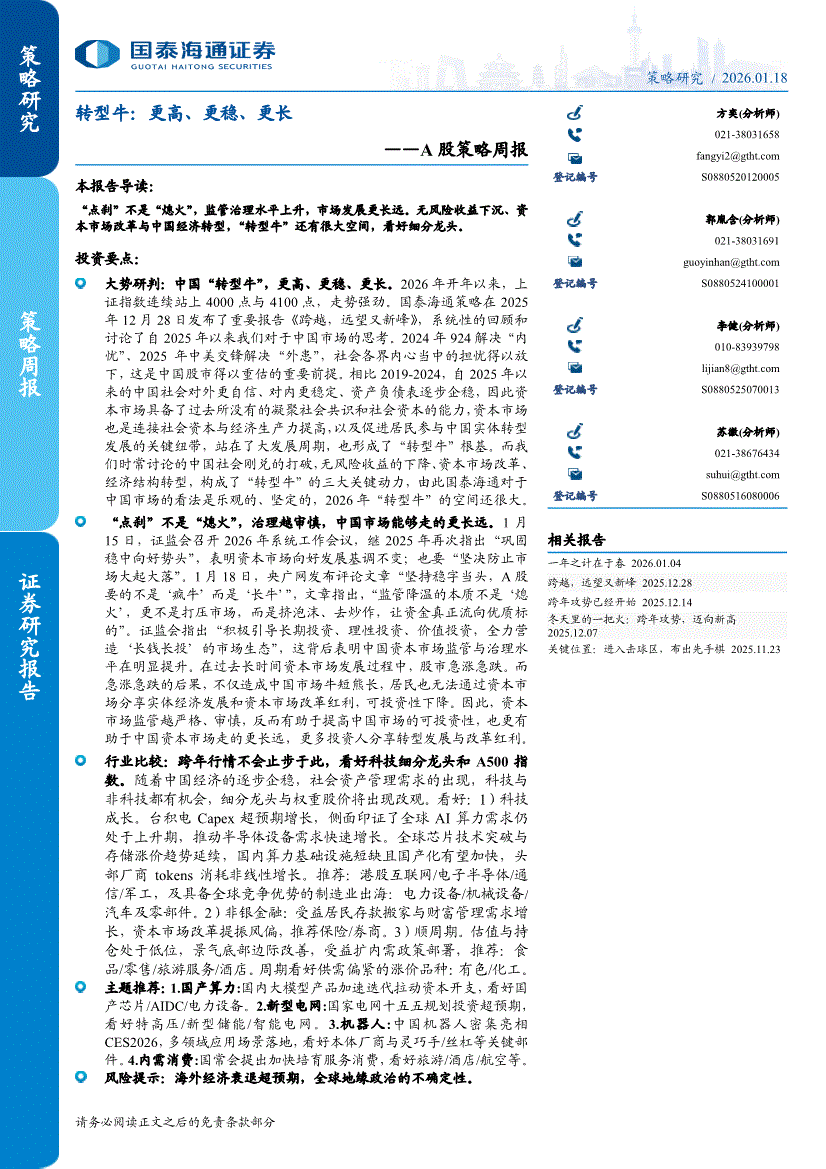 国泰海通证券-A股策略周报:转型牛,更高、更稳、更长-260118
