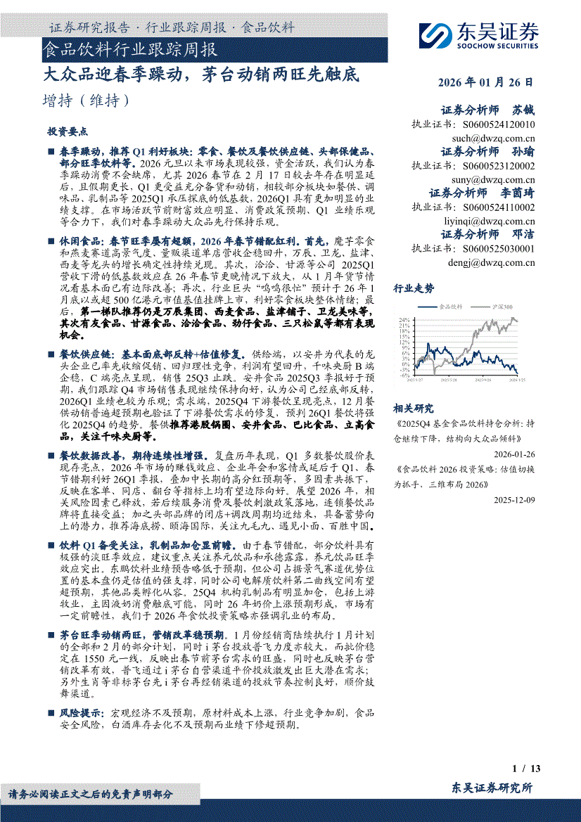 食品饮料行业:东吴证券-食品饮料行业跟踪周报:大众品迎春季躁动,茅台动销两旺先触底-260126