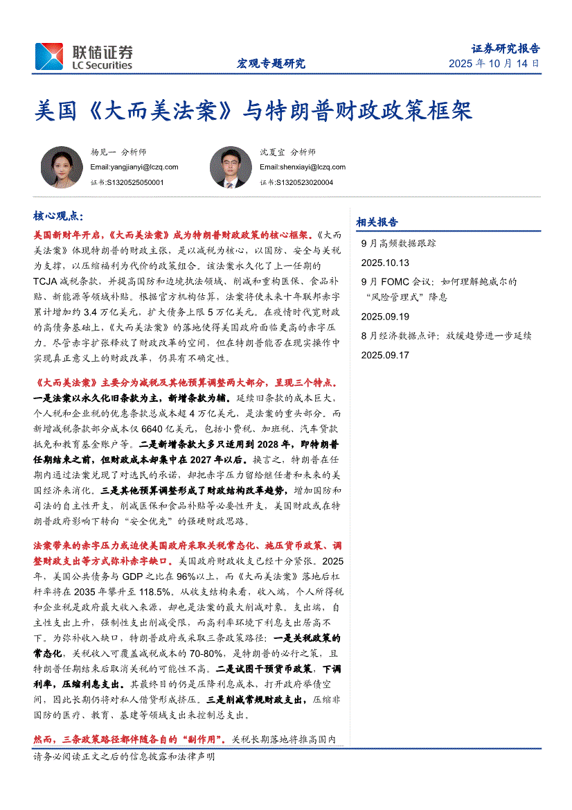 联储证券-美国《大而美法案》与特朗普财政政策框架-251014