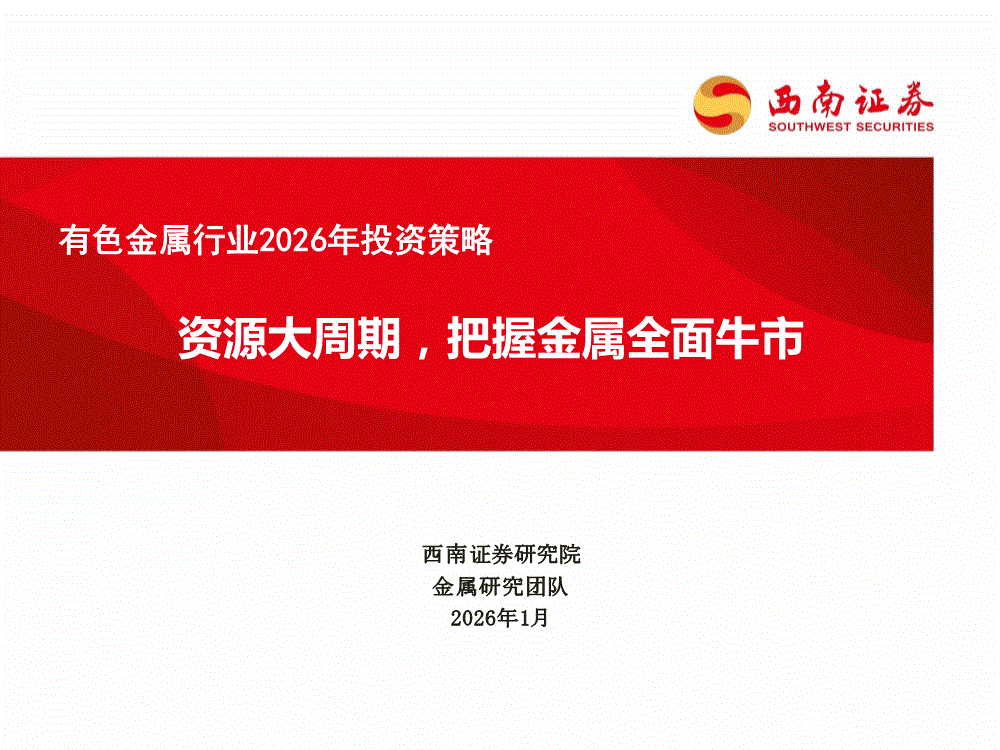 有色金属行业:西南证券-有色金属行业2026年投资策略:资源大周期,把握金属全面牛市-260123