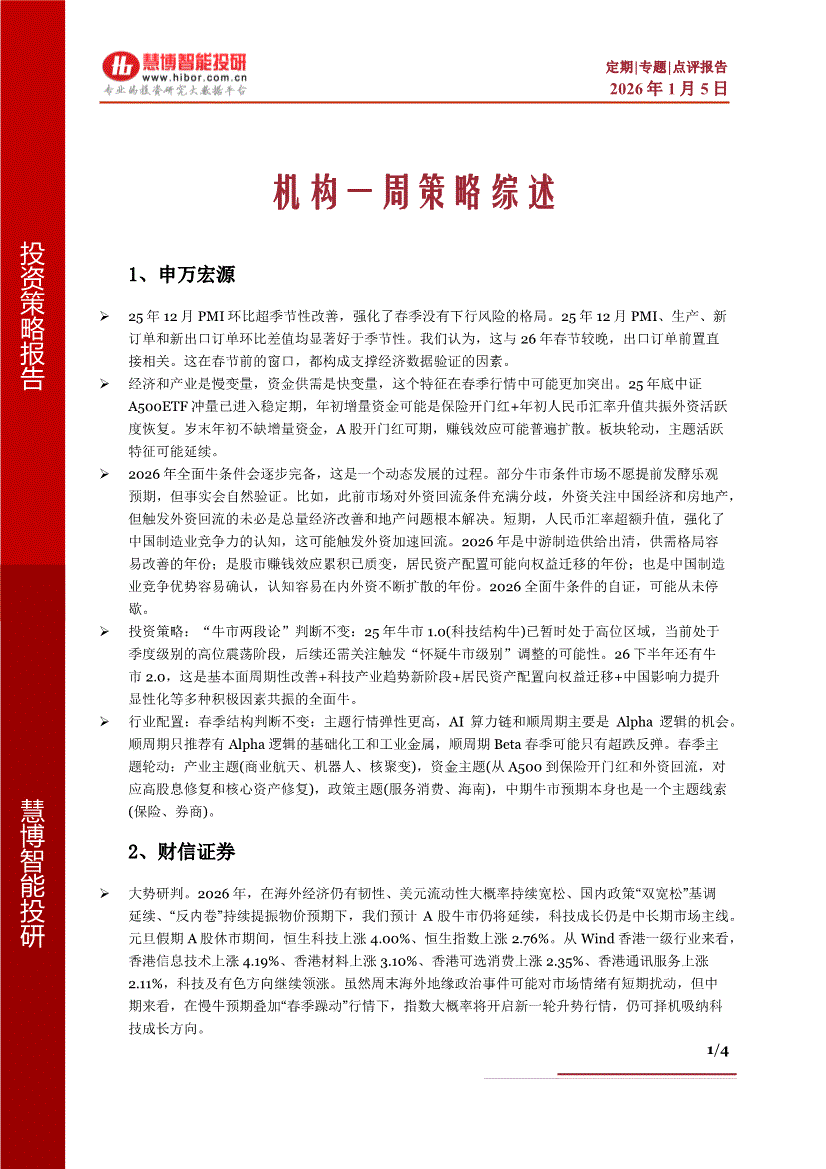 慧博智能投研-机构周策略:机构观点及行业配置-260104