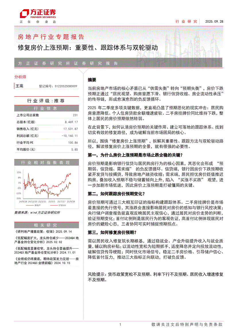 房地产行业:方正证券-房地产行业专题报告:修复房价上涨预期,重要性、跟踪体系与双轮驱动-250928