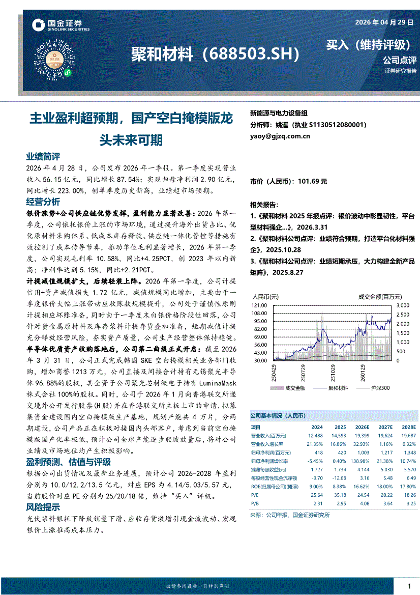 聚和材料:国金证券-聚和材料-688503-主业盈利超预期,国产空白掩模版龙头未来可期-260429