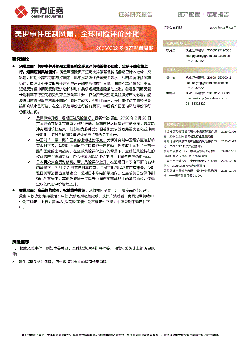 东方证券-多资产配置周报:美伊事件压制风偏,全球风险评价分化-260303