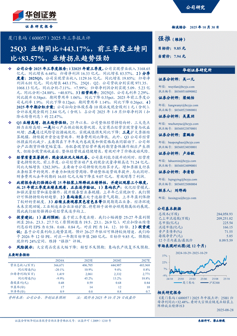 厦门象屿:华创证券-厦门象屿-600057-2025年三季报点评:25Q3业绩同比+443.17%,前三季度业绩同比+83.57%,业绩拐点趋势强劲-251030