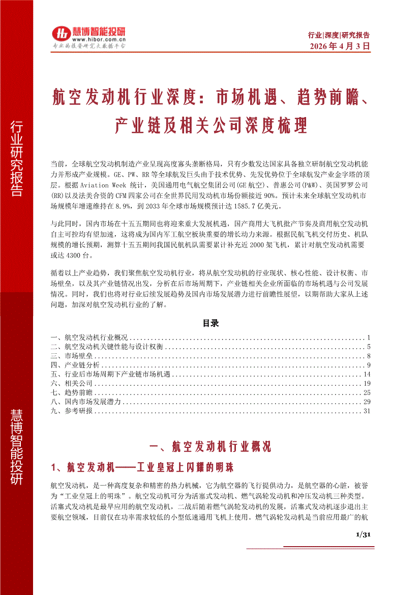 航空发动机行业:慧博智能投研-航空发动机行业深度:市场机遇、趋势前瞻、产业链及相关公司深度梳理-260403