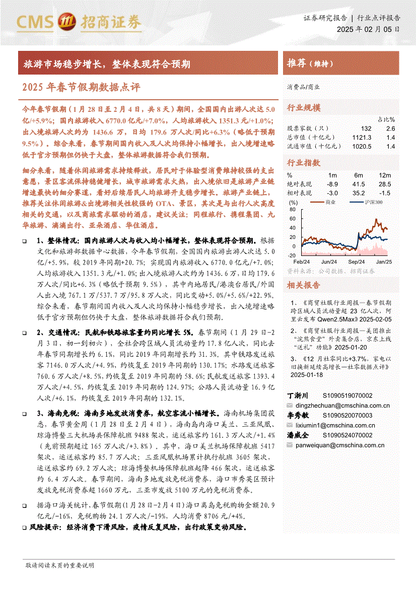 商业行业:招商证券-商业行业2025年春节假期数据点评:旅游市场稳步增长,整体表现符合预期-250205