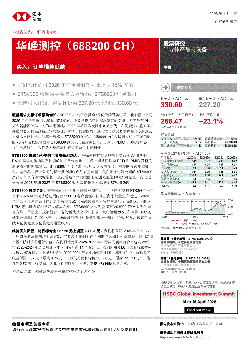 华峰测控:汇丰前海证券-华峰测控-688200-买入:订单增势延续-260401
