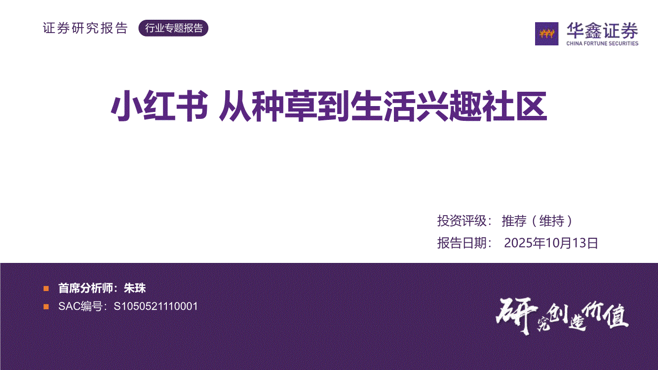 传媒行业:华鑫证券-传媒行业:小红书,从种草到生活兴趣社区-251013